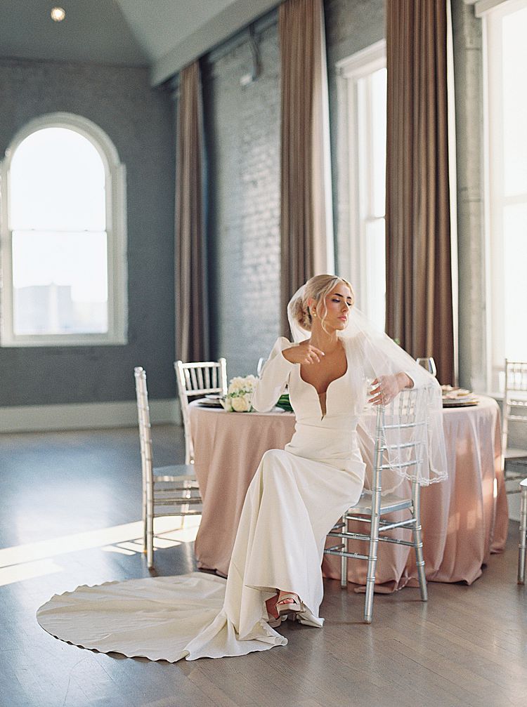 Reese’s Faulkner bridal session in downtown Jackson, Mississippi perfectly blended modern elegance and timeless charm. The Faulkner’s industrial architecture, tall windows, and soaring ceilings create a dream backdrop for bridal portraits. Captured around 3 pm, the afternoon sun filled the space with a beautiful, natural glow.